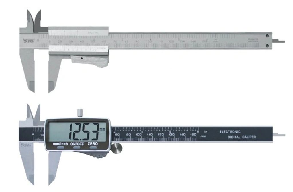 Vernier (pie de rey) analógicos y digitales de diferentes longitudes, resistentes a la corrosión.